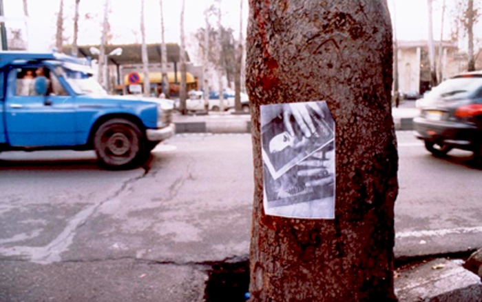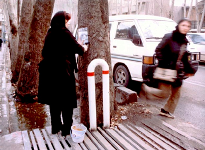 Neither my appearance nor what I was gluing to the wall looked like what a city worker would do. People gathered, started reading or checking it out. The elders, the same ones who for a lifetime had forbidden Forugh to their sons and daughters, quickly recognized the face and the poetry — perhaps in secret many had read her.