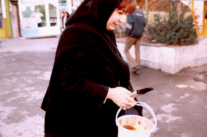 And the younger people seemed to have seen her before. You may refuse to accept Forugh but you cannot ignore her. In a politicized city such as Tehran, many quickly connected her to the current political issues. Here and there they stood around the pictures in discussion. During a three-hour-long walk, the route was filled with posters, even though twice the city workers and police tore the papers off the walls and took away the glue and brush with threats. But in the afternoon, if you would follow the images here and there, you will reach her grave, under the light snow fall of which a small crowd had celebrated her birthday with a small cake.