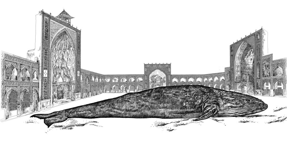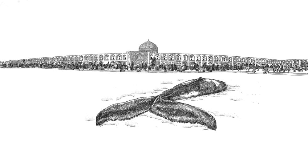 It was the second anniversary of my living in Isfahan and also the second year of the COVID-19 pandemic. I found myself standing in the center of Naqsh-e Jahan Square—a place usually filled with tourists, carriages, people, movement, and sound. But suddenly, it was completely still. Empty. The entire world had fallen into a strange pause. And in that quiet, I began to imagine: a massive whale, stranded. Not on a beach, but here—inland, in a place with no sea.