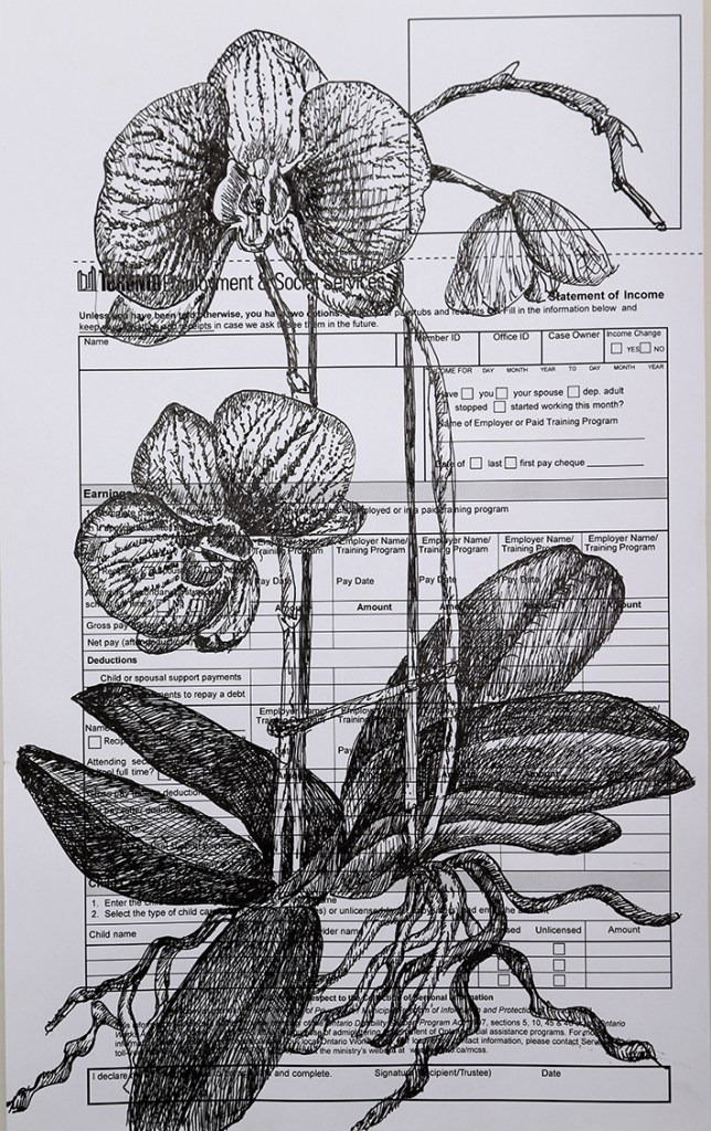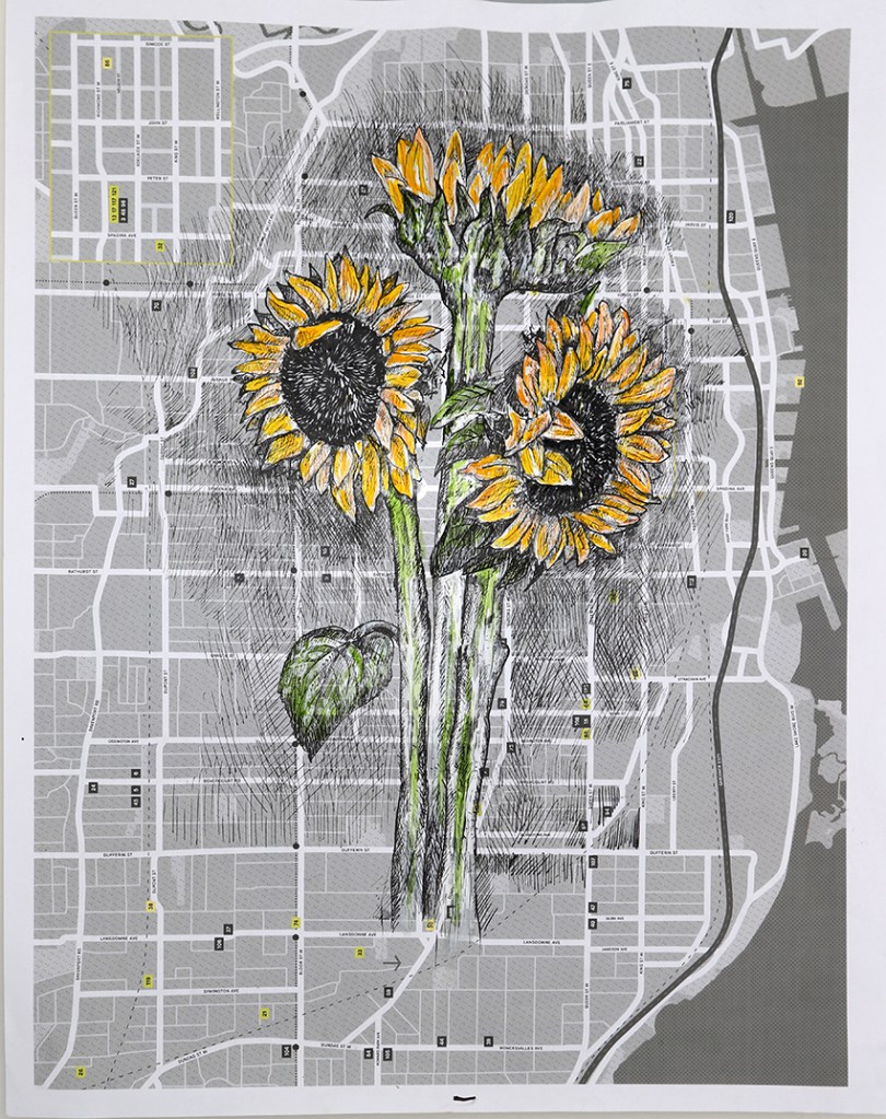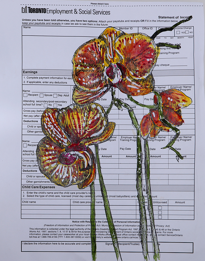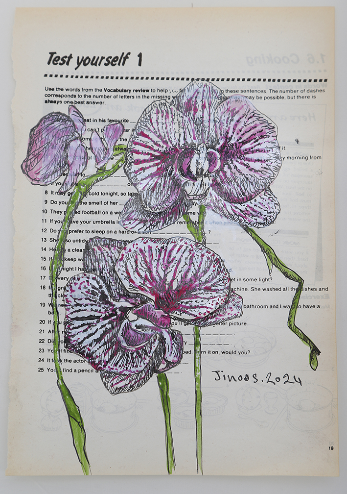 Could these words, made by lines, colors, and floral designs, offer a means to endure the harsh times, whose dissonant rhythm accelerates with each passing moment?