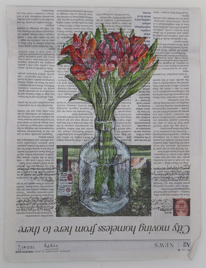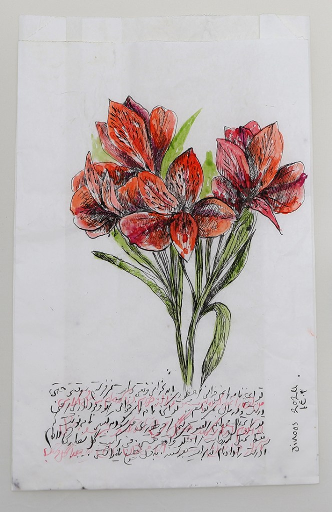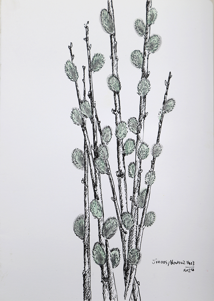 Nikzad Nojumi, a pioneering Iranian painter, along with Jinoos Taghizadeh, a multidiciplinary artist, are embracing the arrival of spring. For years, alongside their ongoing projects, they have been drawing flowers and plants—a creative way to connect with life.