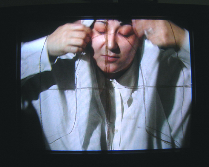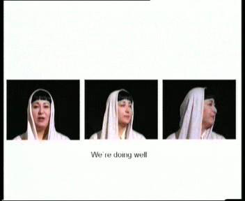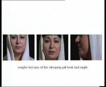 “Messages” is a ten-minute video project made up of three parts and three messages, messages such as those sent over mobile phones or the Internet – however over the image of the message’s owner; over my image. The image has been divided into three frames and in each is a shot of my face, from the shoulders up, like employee photographs and the only movement is that of transition from frontal to profile like the mug shots at a police station. Happy and calm I send a not-so happy message to an unknown recipient. I send news of going into a coma which is trivial and mild and I hope for its rapid improvement. A coma which is absolute and there’s not much hope of its improvement in reality. A naïve hope for the improvement of the situation.