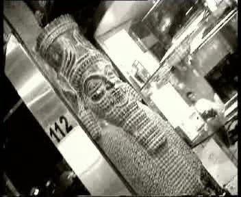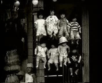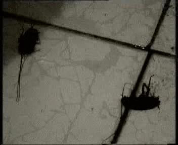 Again black and white images and the city amid which cockroaches are dying and cuts of meat hanging in its butcher shops can be seen. Bookstores and hesitation over the names and faces of writers and intellectuals, dolls hung over the doorways of shops not so unlike cuts of meat. And the stare of the camera with its heavy breathing descends the stairs into the depths of the ground.