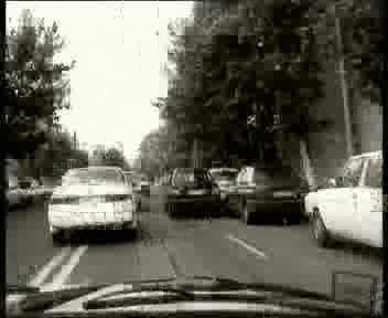 After the first message, black and white images are seen from the wandering eye of the camera which searches in the streets of the city, sometimes slowly and dragged out and at other times fast, rushed and agitated and records images which are sometimes illusionary from the lines on the carpet underfoot, it rests on the lines of the sidewalk. From the motorcyclists and military men and accidents, from the people and the technology-filled bazaar and slow business, from sitting in cafes and streets and its trees from the end and while sleeping… over these images the sound of breathing is heard, the sound of heavy slowing breathing. The sound of comatose breathing under the oxygen tent, an oxygen the presence of which is not heard.
