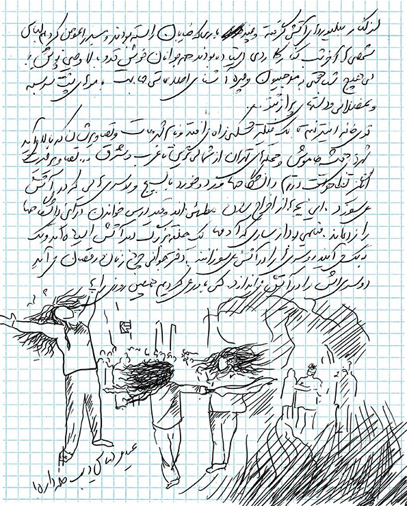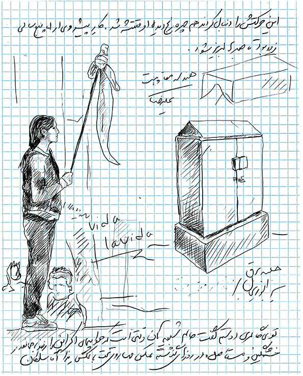 Revolution Notes is an attempt to remember the details that a great whole is formed by its accumulation. It is a challenge with fingertips, pen and white paper when the street is covered with blood and fire… blood and fire and smoke… blood and fire and smoke and screams… blood and fire and screams and bodies that They want to be freed from the subjugation of years… blood, fire, smoke, screams, bodies and bullets… writing on white paper is laying hands on the naked body of paper in small intervals of time, focusing in the commotion of the days that make history; In the middle of the bodies that make history, there is a hand on the body of the street and its registration in the memory that escapes in the onslaught of news… the revolution of memory against forgetting.