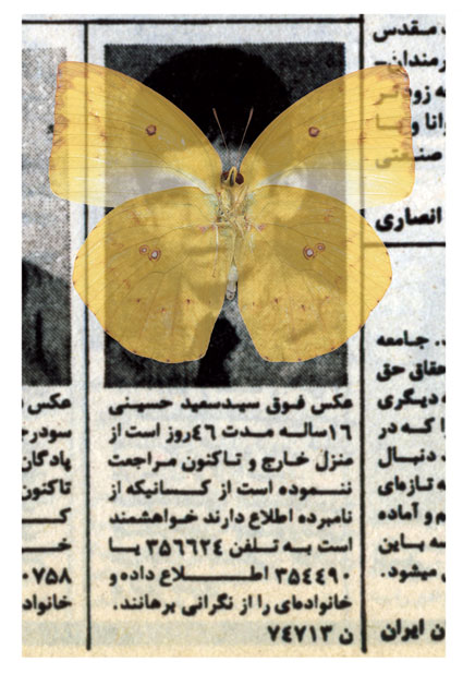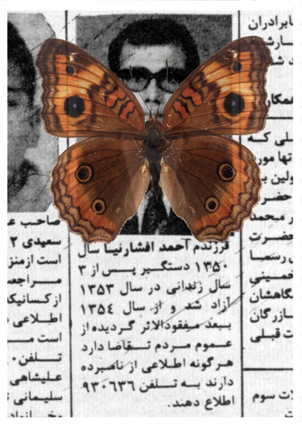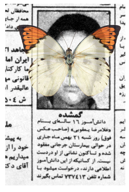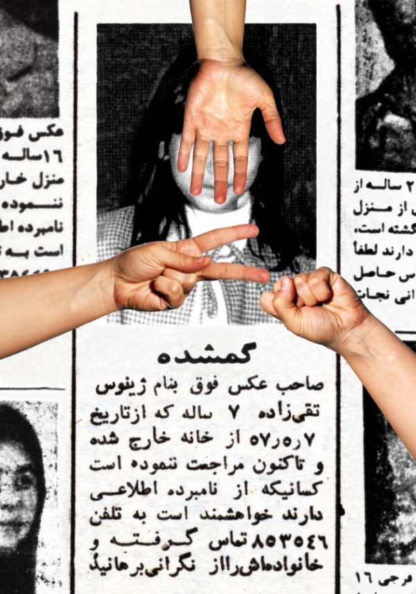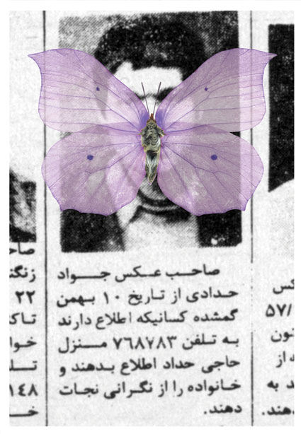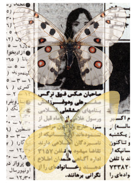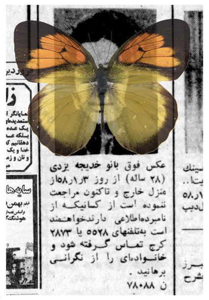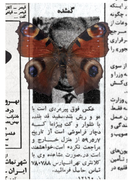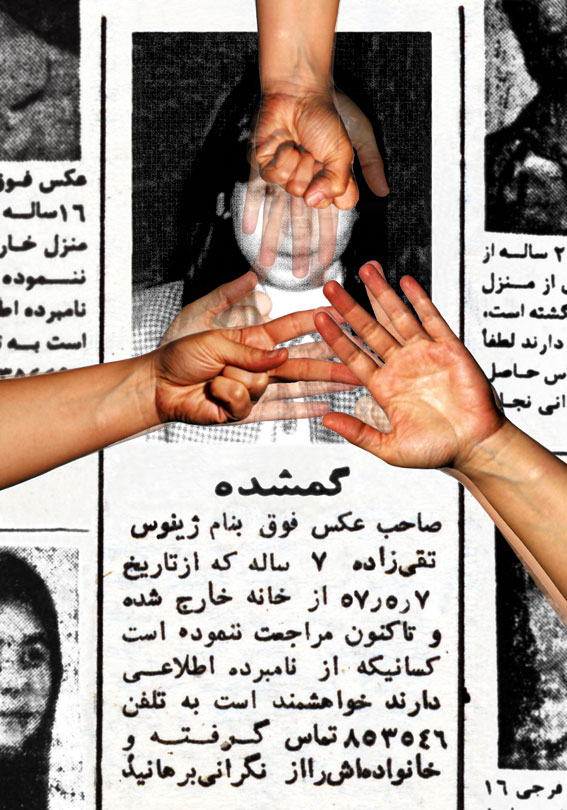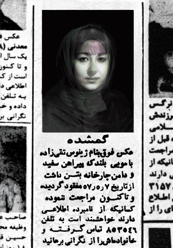 Occasionally, I dream of one of them, the dream of those whose pictures were shown between 4:30 to 5:00 p.m. before the Children’s Program on Channel One, the dream of one of those whom we were told that “she has left her house and has since not returned.” I dream that I have coincidentally seen one of them somewhere, in a shop, in the alley or on the staircase, with a face covered in print-letters, staring me in the eye. In my dreams, I want to jump and call someone to say that I have found one of the “Lost Ones.” I do not remember if I had seen her image on “The Lost” TV program or in my father’s newspaper, the paper that was passed from hand to hand and whose important sections were clipped, and I could read the words of “Fire,” “Blood,” “Machine gun,” “Firing squad,” and the “Yes and No.” Those days of 30 years ago, I imagined that my greatest life duty was to gaze at the eyes of “The Lost,” and to memorize them well, so that one day, somewhere, I would find them and relieve a “family’s anxiety.”