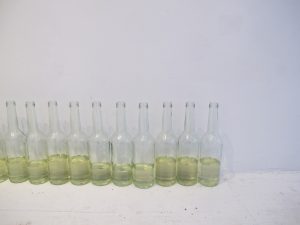 The smell of gasoline which father is pouring into bottles