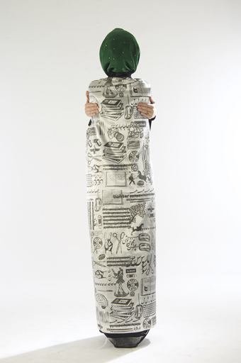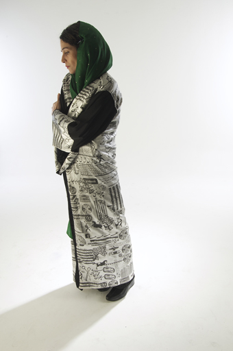 In the series “ Velvet Ghabas “, clothing embodies media and shows up in form of Ghaba; Ghaba’s were worn by the elite of the country and here it is again worn by same people and within it’s inner layers depicts designs that are the signs and symbols of the “others“ . Ghaba was the clothing of eminent men of the country and was often used to cover musical instruments .The instruments became smaller so that they could be covered up, but the music remained with the help of Ghabas.